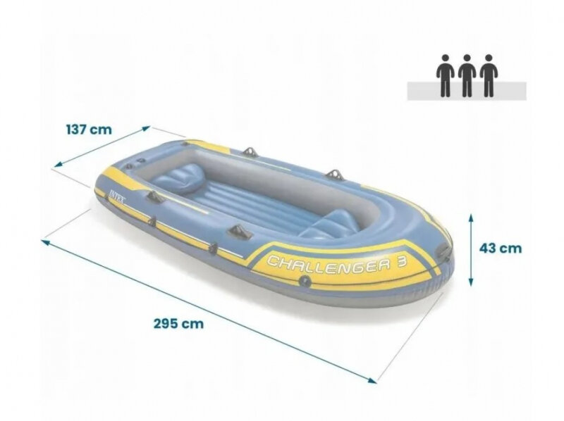 Надувная лодка трехместная Challenger 3, 295х137х43 см + весла алюмин. 122 см, насос ручной, INTEX (68370NP)