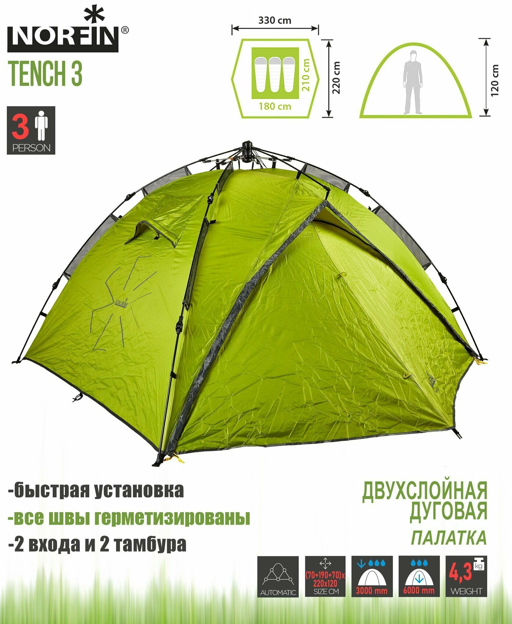 Палатка Norfin Tench 3 NF полуавтоматическая . интересное: