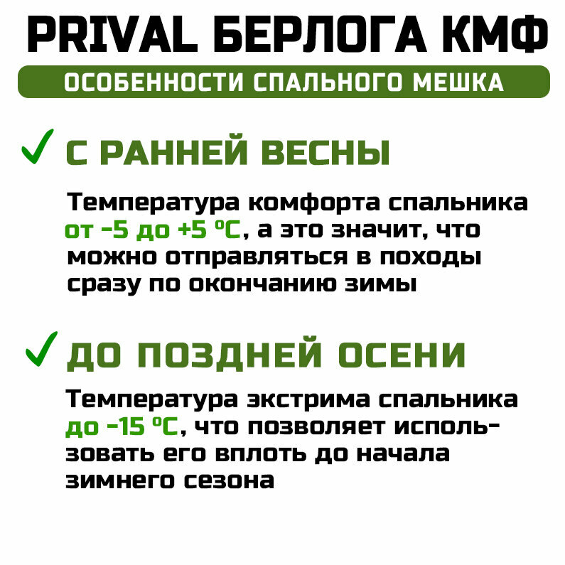 Спальный мешок Prival Берлога, правый, зеленый интересное: