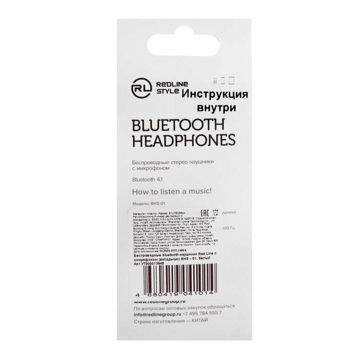 Red Line Наушники Red Line BHS - 01, беспроводные, вкладыши, микрофон, BT 4.1, 55 мАч, белые