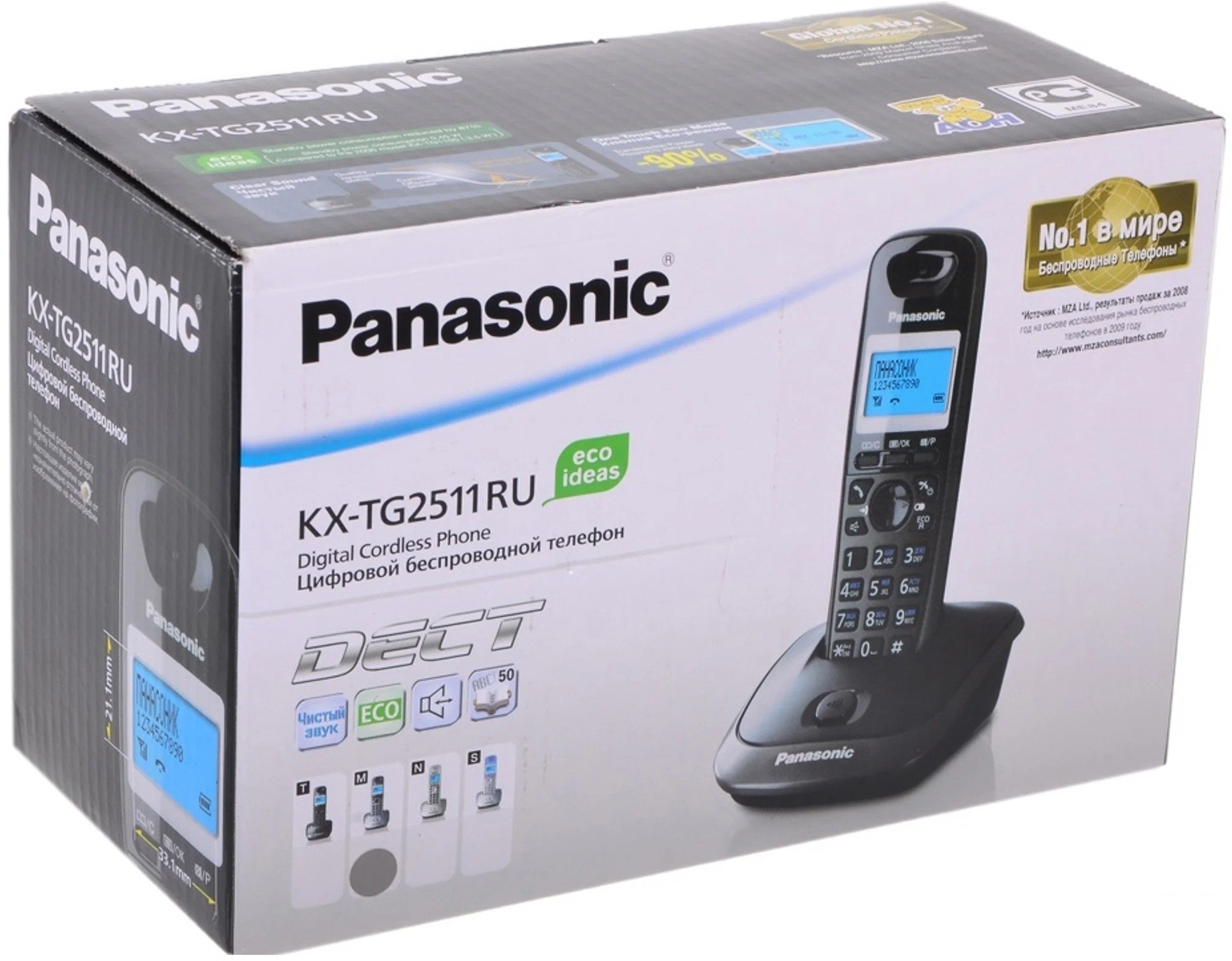 Panasonic KX-TG2511RUT - Беспроводной телефон DECT (радиотелефон) , цвет: темно-серый металлик