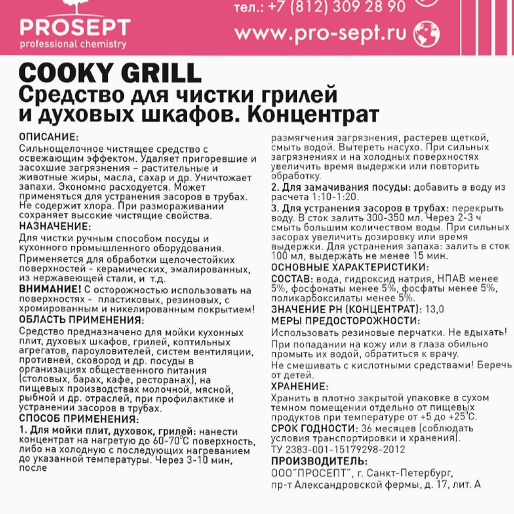 Средство для удаления жира и нагара PROSEPT COOKY GRILL 550мл, концентрат 1шт
