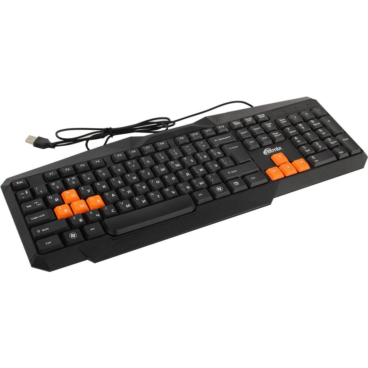Клавиатура RITMIX RKB-152, черная/оранжевая, USB. Кол-во клавиш: 104. Длина кабеля 135 см. (1/20)