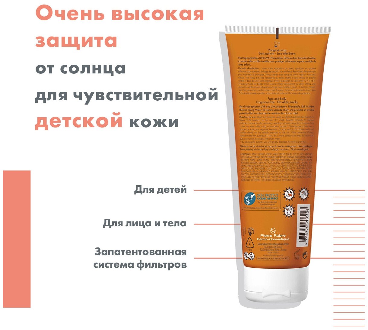 AVENE Солнцезащитное молочко SPF 50+ для детей, 250 мл