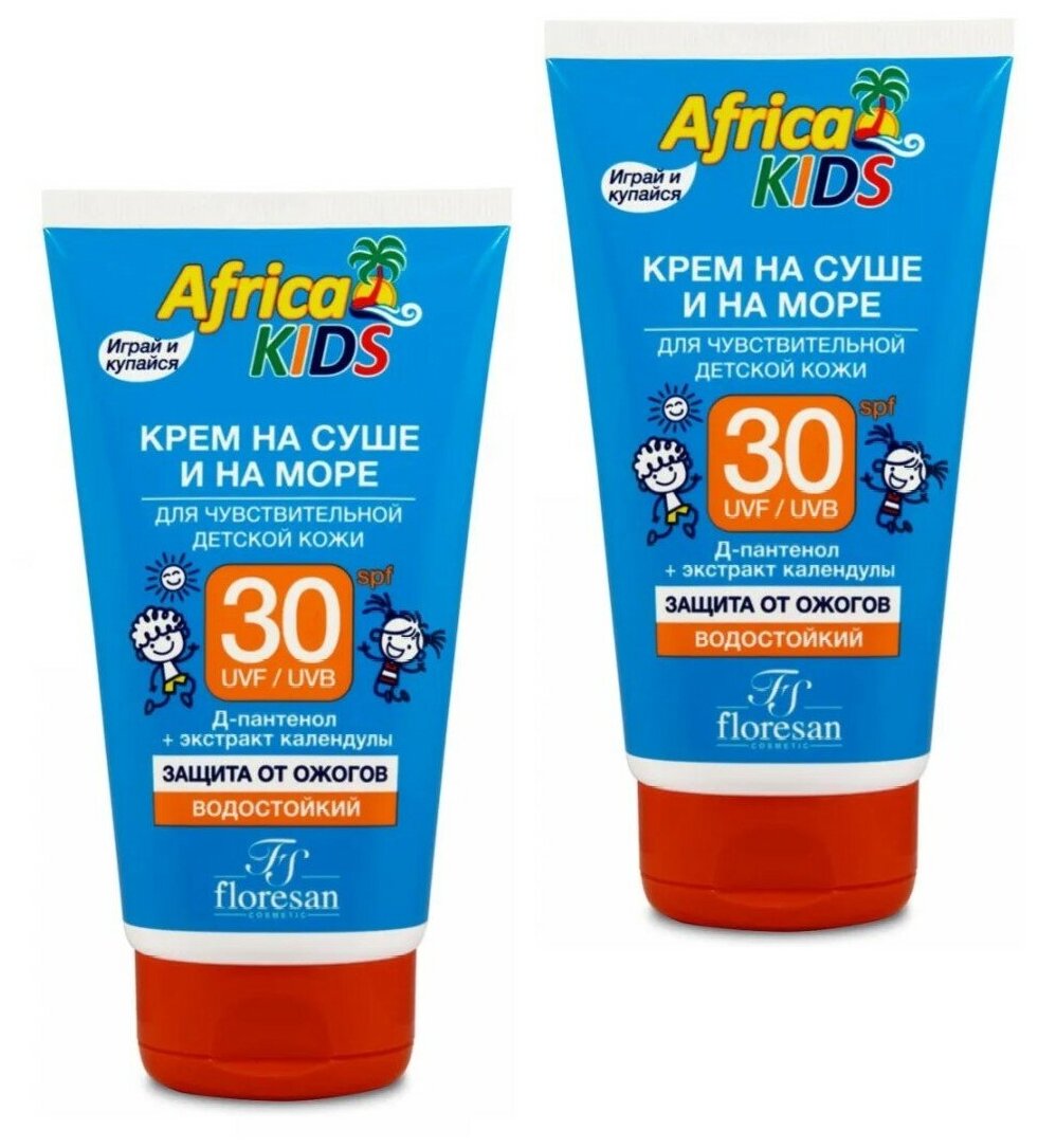 Крем детский защита от солнца на суше и на море (SPF 30) Floresan Africa kids (Флоресан) Ф-410, 150мл х 2шт