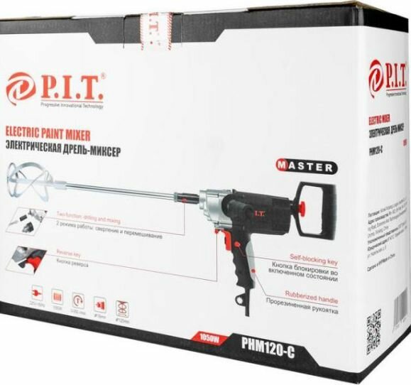 Дрель-миксер P.I.T. РHМ120-С мастер,1050 Вт, 0-550 об/мин