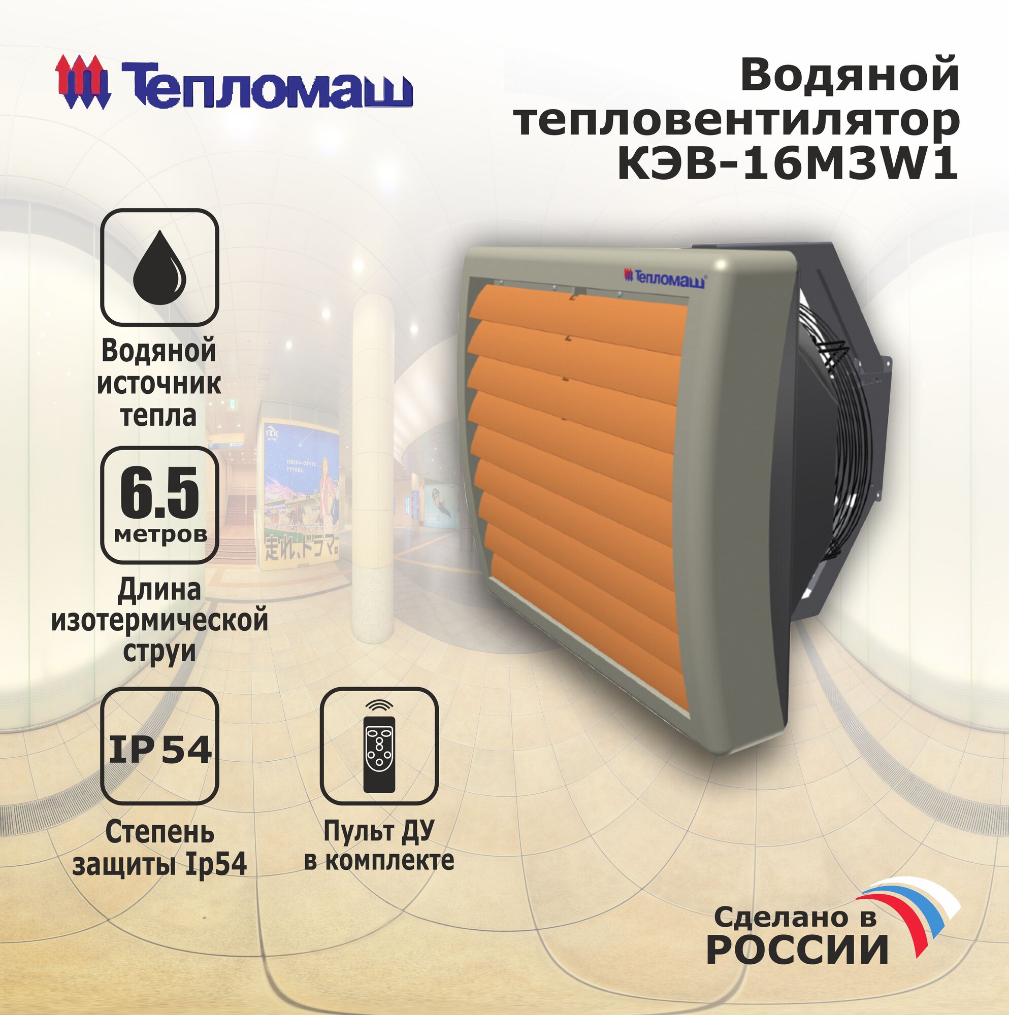 Тепловентилятор водяной Тепломаш КЭВ-16M3W1 (С пультом И кронштейном)