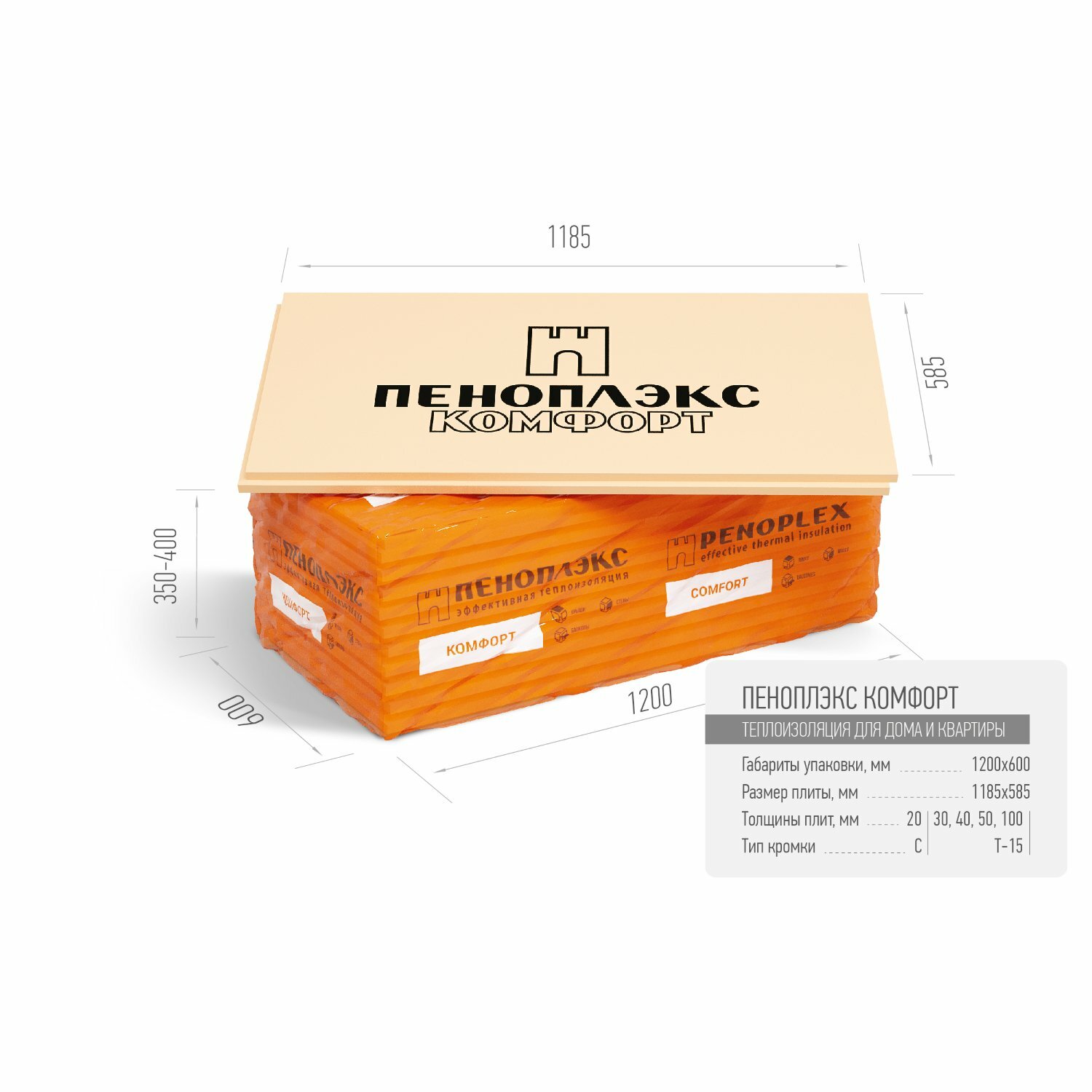 Пеноплекс 20мм пеноплэкс комфорт 118,5х58,5см 20шт плотность 31(13,86м2)