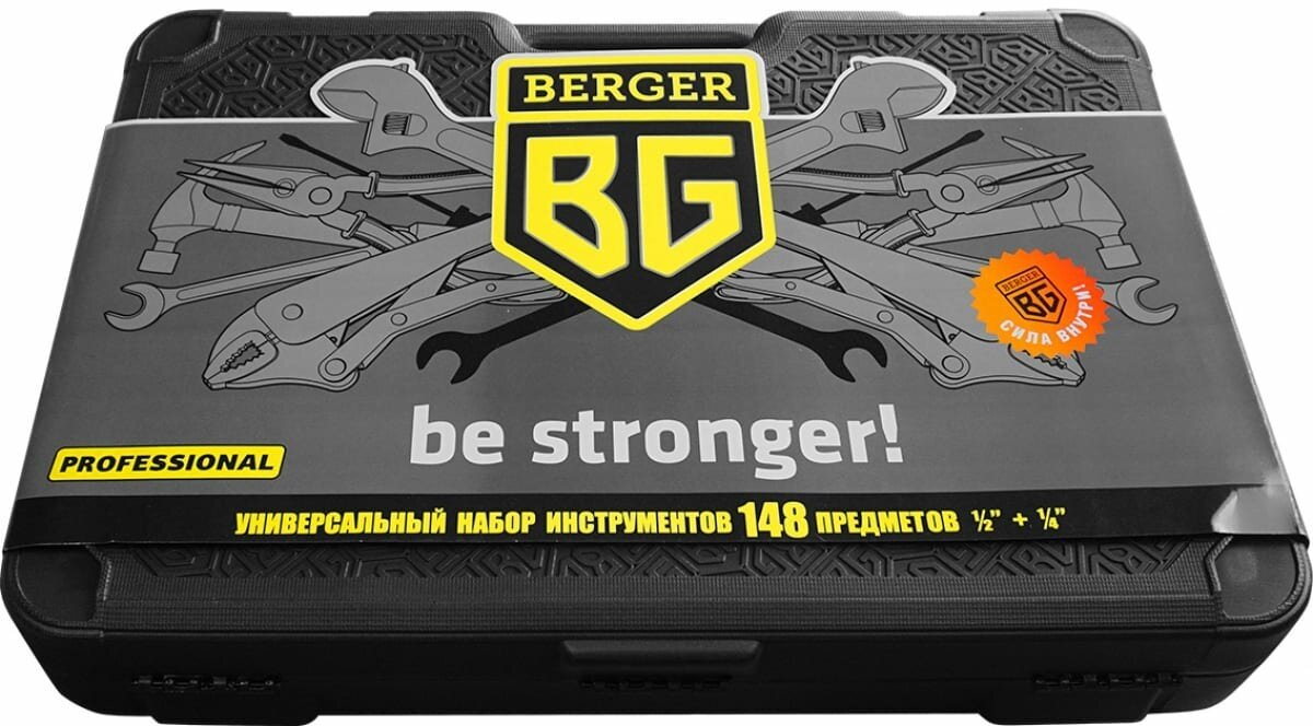 Набор инструментов BERGER BG148-1214, 148 предмет 1/2" -1/4", кейс с металлическими замками и усиленными петлями