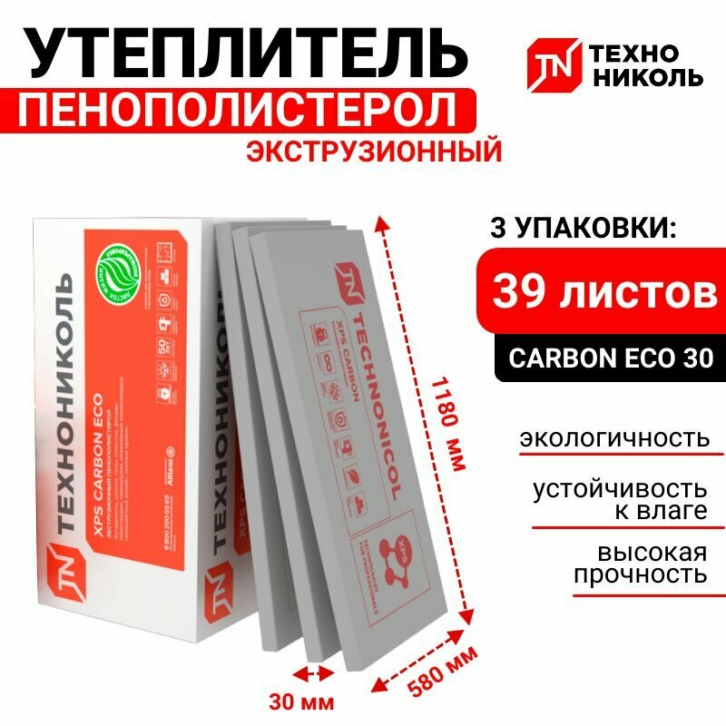 Утеплитель Техноплекс технониколь XPS CARBON ECO 30мм, пенополистирол 13шт (8,9м2)