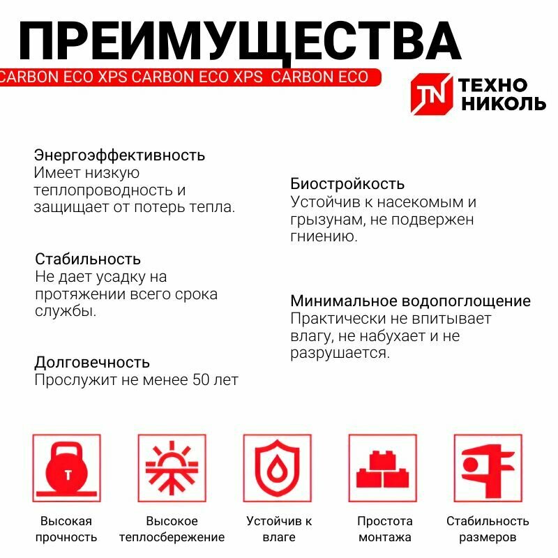 Утеплитель технониколь xps carbon eco из экструдированного пенополистирола 1180Х580Х50-L 8 плит 5,47 кв м в упаковке