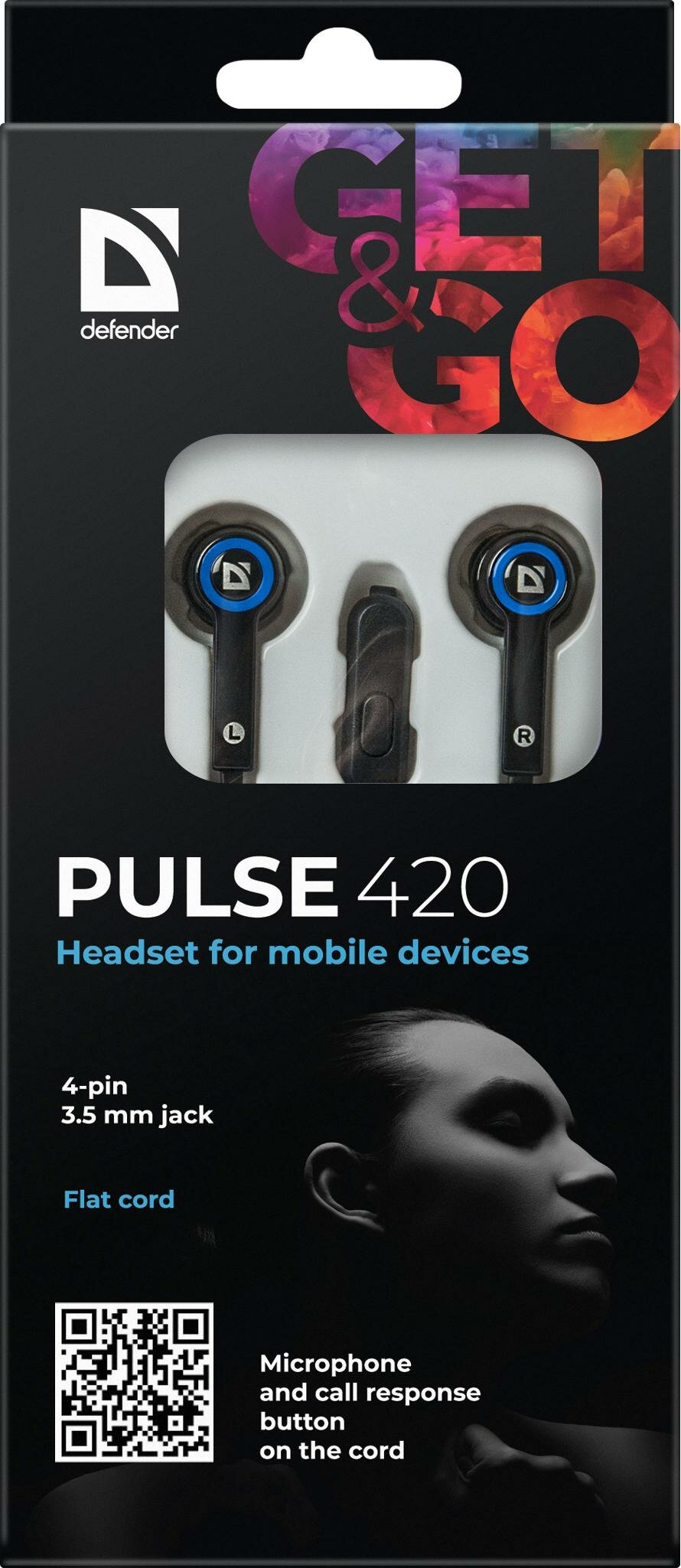 Defender Гарнитура для смартфонов Pulse 420 черный + оранжевый, вставки
