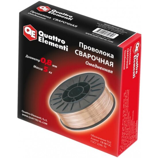 Проволока сварочная QUATTRO ELEMENTI омедненная, 0,8 мм, масса 5,0 кг интересное: