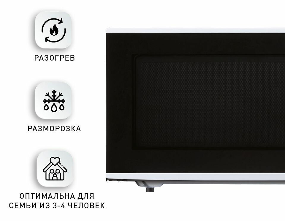 Микроволновая печь FS MWO D 20.10 WH, Сенсорное управление, 6 программ для приготовления, антипригарная эмаль, таймер, блокировка от детей.