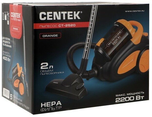 Пылесос Centek CT-2520 Orange, 2200/400 Вт, 2 л, мультициклон, оранжевый