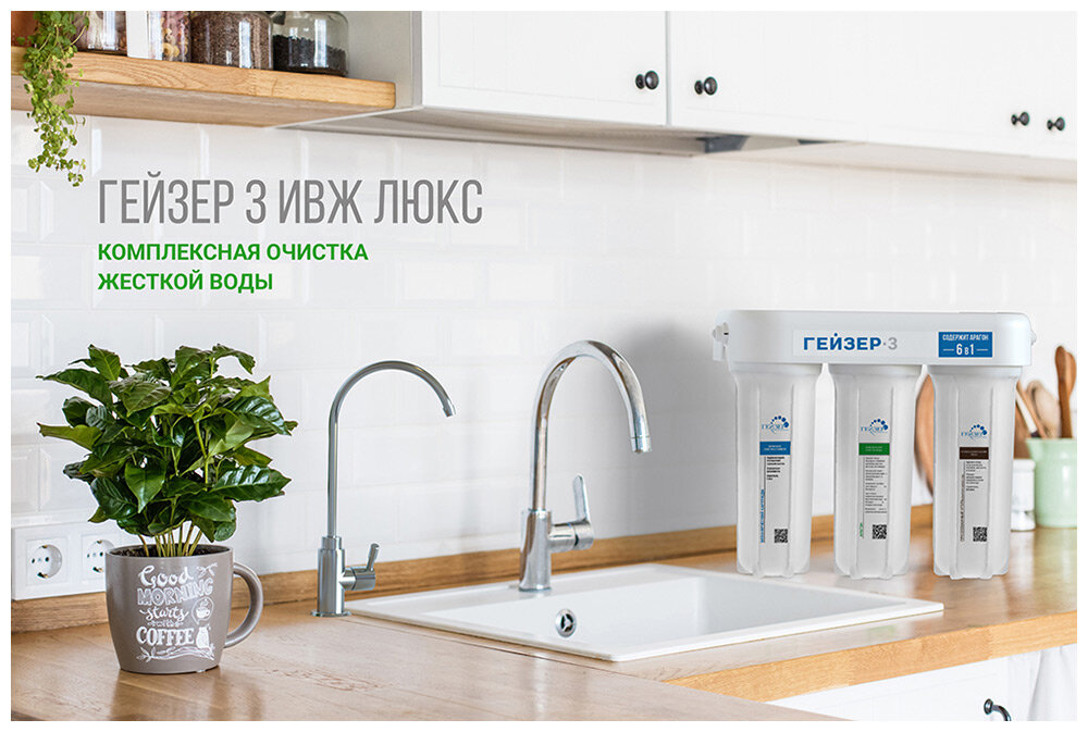 Фильтр под мойкой Гейзер 3ИВЖ люкс, кран 6 трехступенчатый для жесткой воды