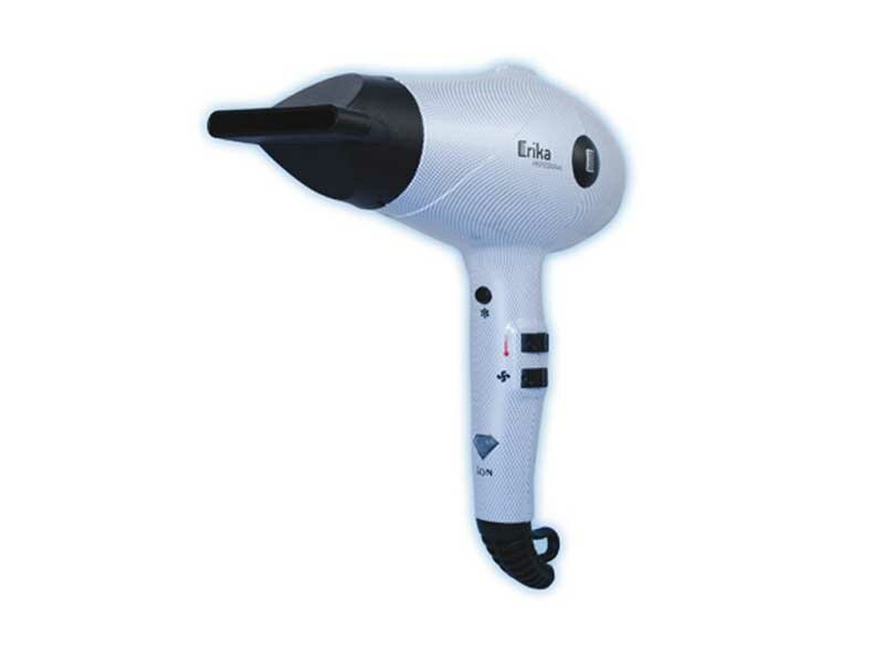 Купить Фен с ионизацией потока ERIKA PROFESSIONAL HDR-002W, 2000 Вт, 19 м/с, 2,7 м, концентратор + диффузор
