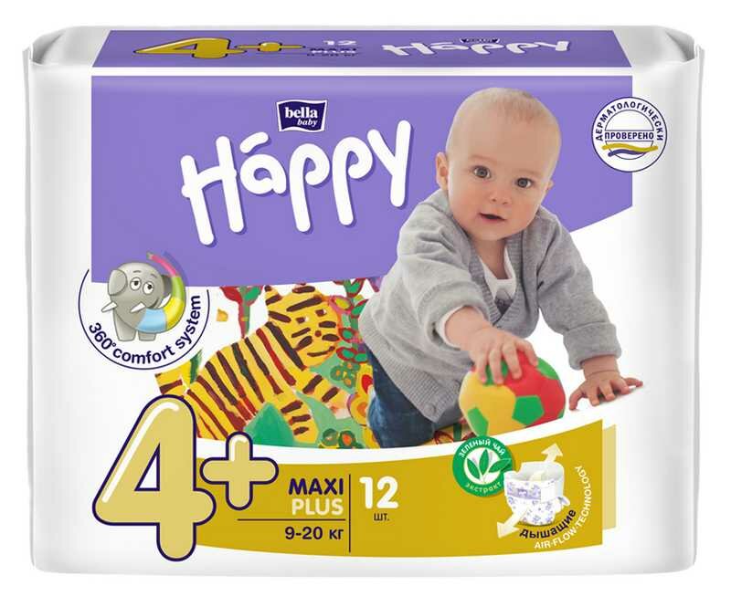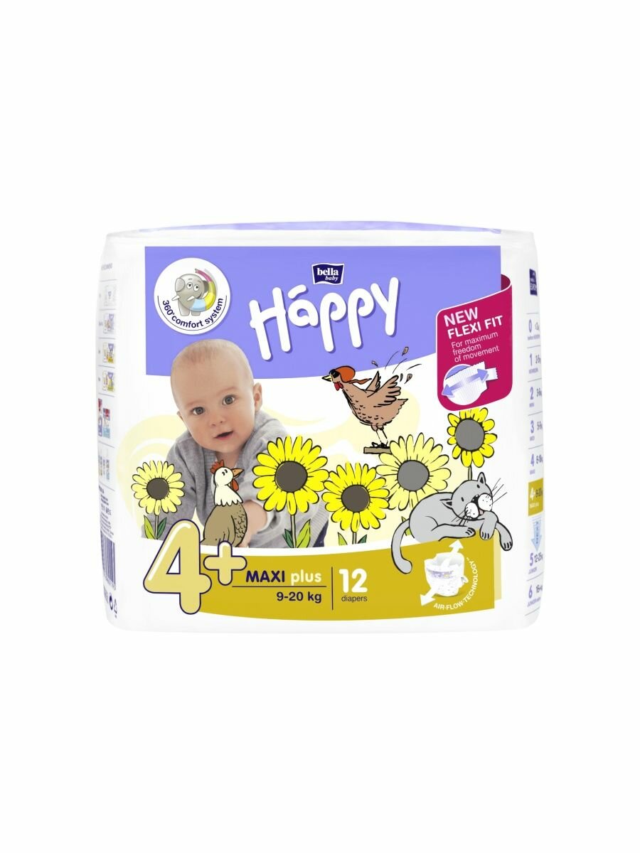 Bella Baby Happy подгузники maxi plus 4+ (9-20 кг), 12 шт.