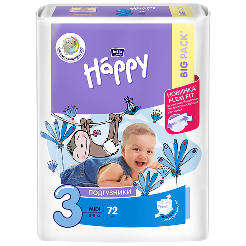 Подгузники Happy Midi (5-9 кг) 72 шт.