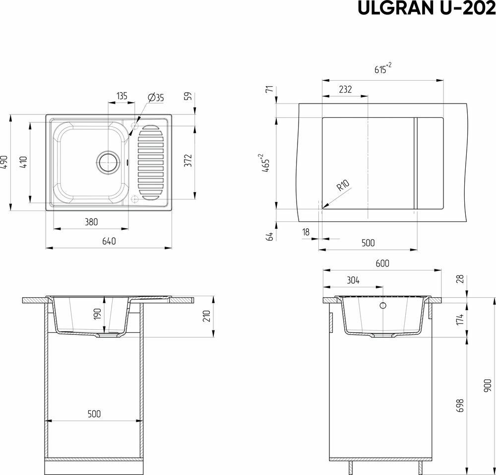 Мойка для кухни из искусственного камня Ulgran U-202-308, черный