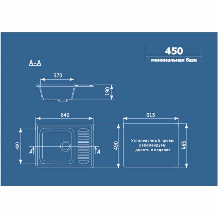 Кухонная мойка U-202 640*490мм прямоугольная (310) серый