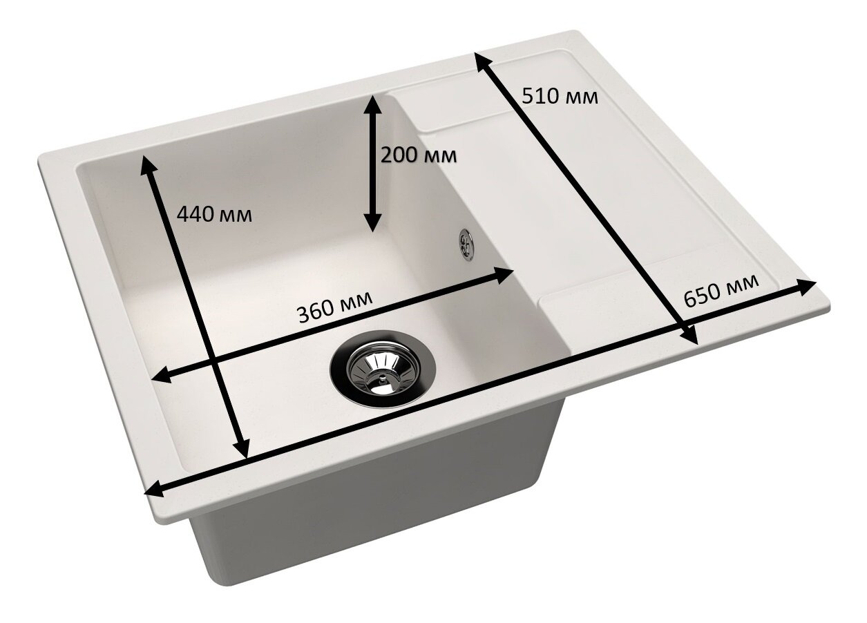 Купить Мойка для кухни врезная каменная Dr. Gans ТЕХНО-650, цвет белый, с крылом, прямоугольная, 650х510х217 мм