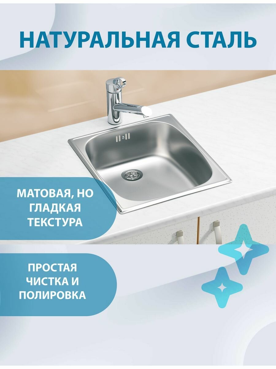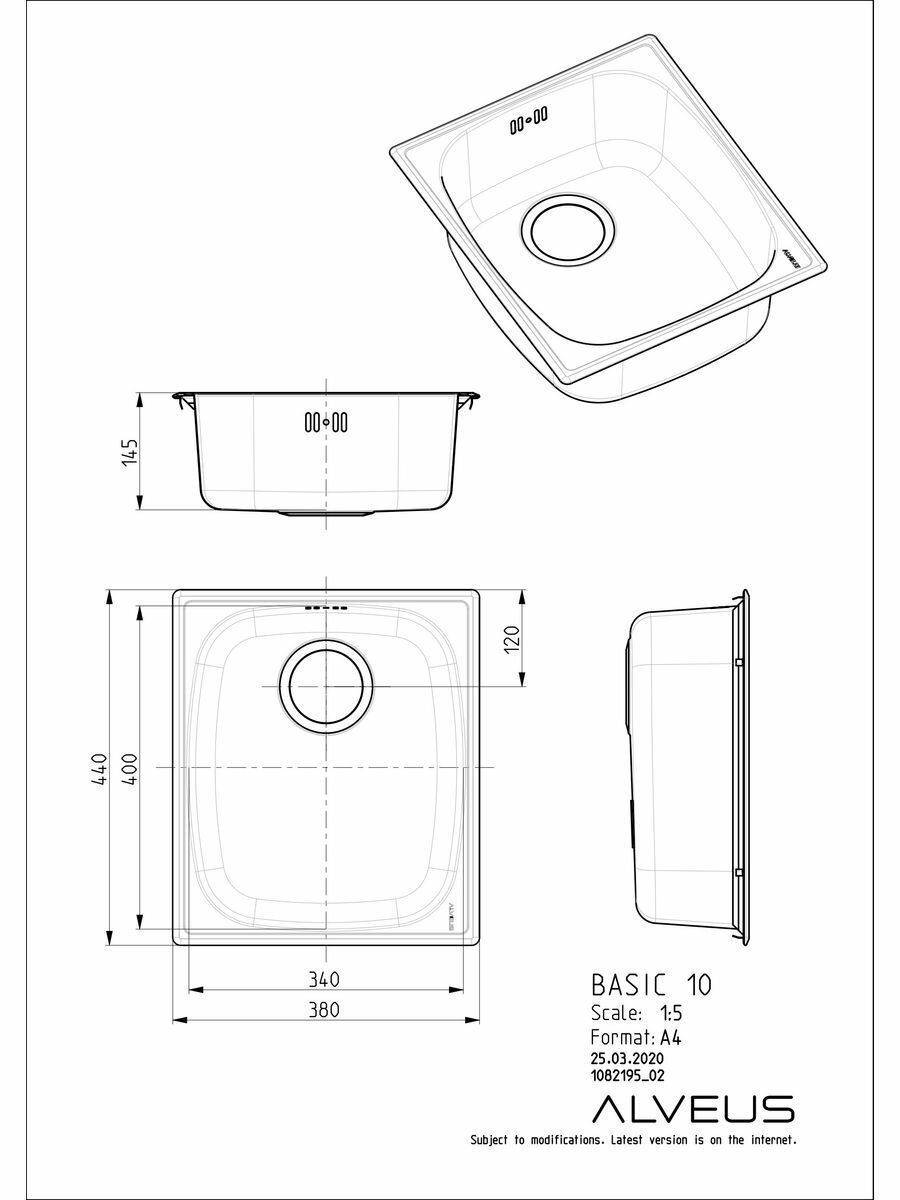 Кухонная мойка Alveus Basic 10 NAT 380х440х145 нержавеющая сталь, с сифоном (1082195)