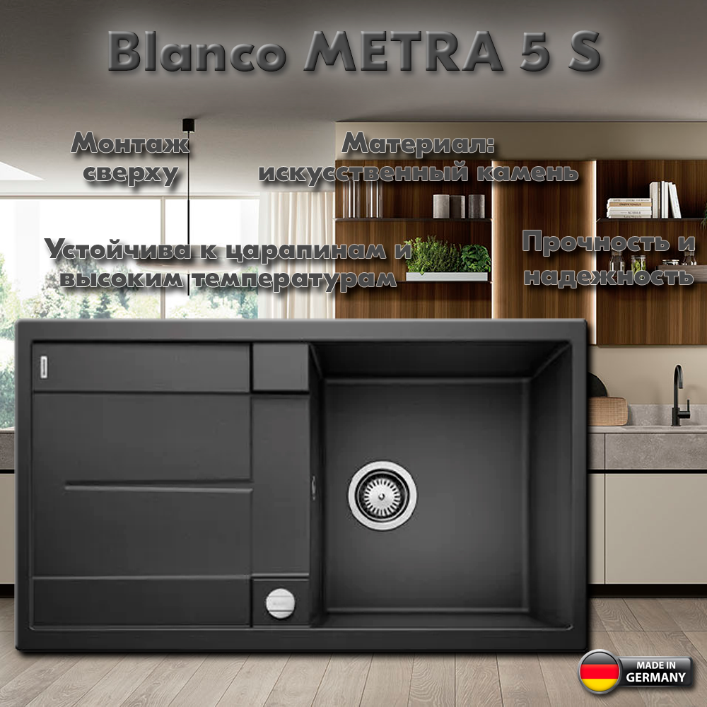 Мойка для кухни Blanco Metra 5 S черный, клапан-автомат
