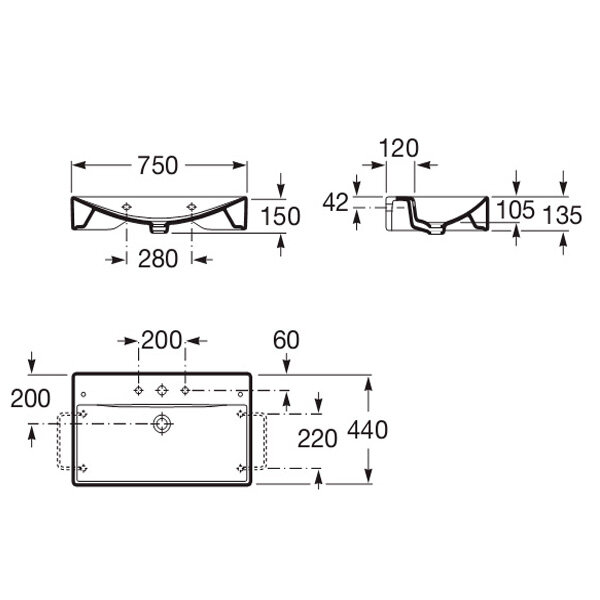 Раковина накладная/подвесная ROCA DIVERTA 327110000 белый 750х440х150