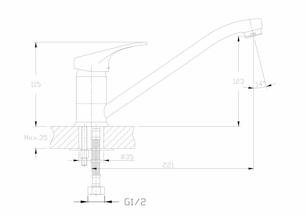 Купить Haiba Смеситель для кухни (Lt) плоский поворотный излив, картридж 35 мм, шпилька, хром, HB4813