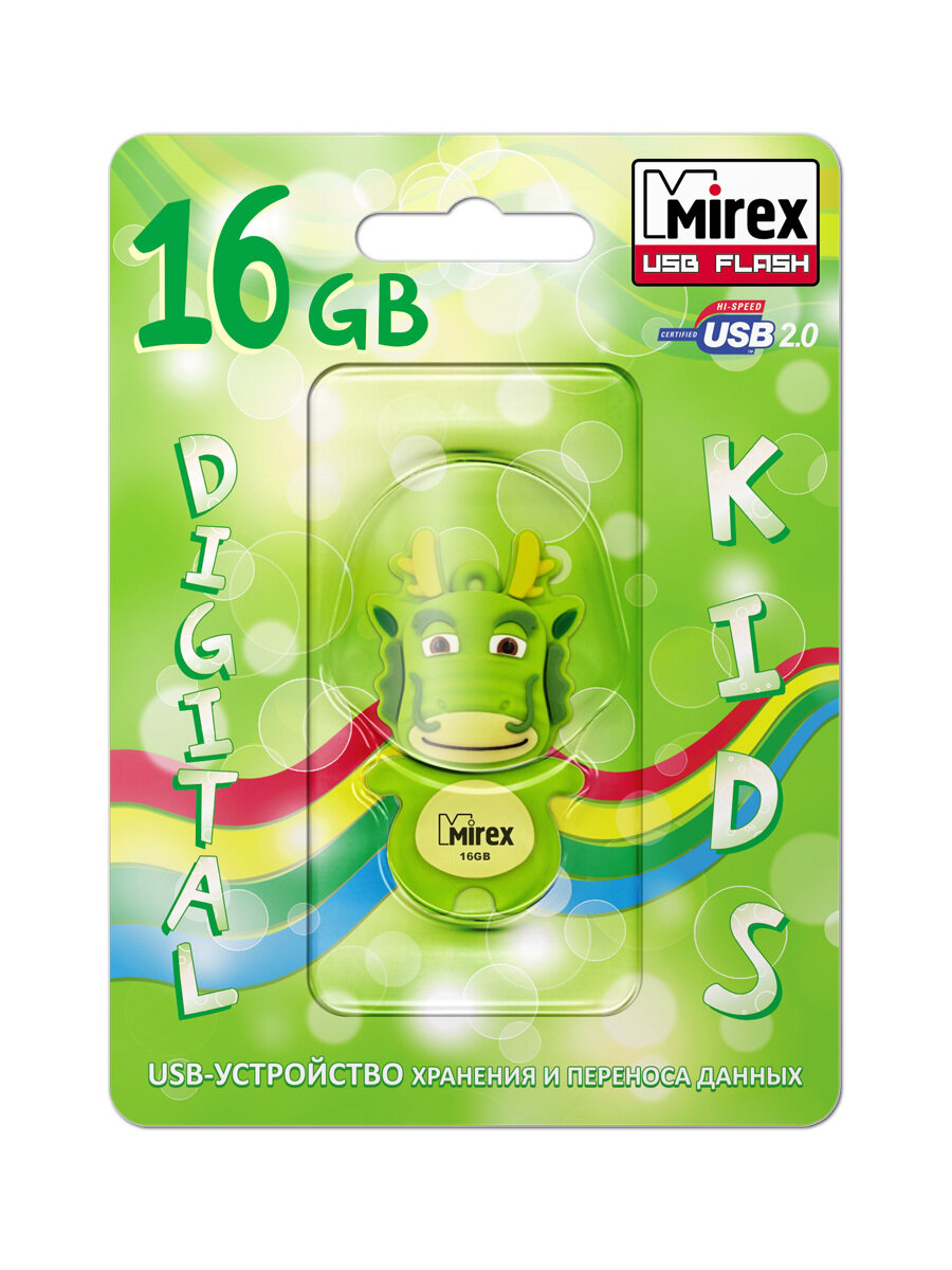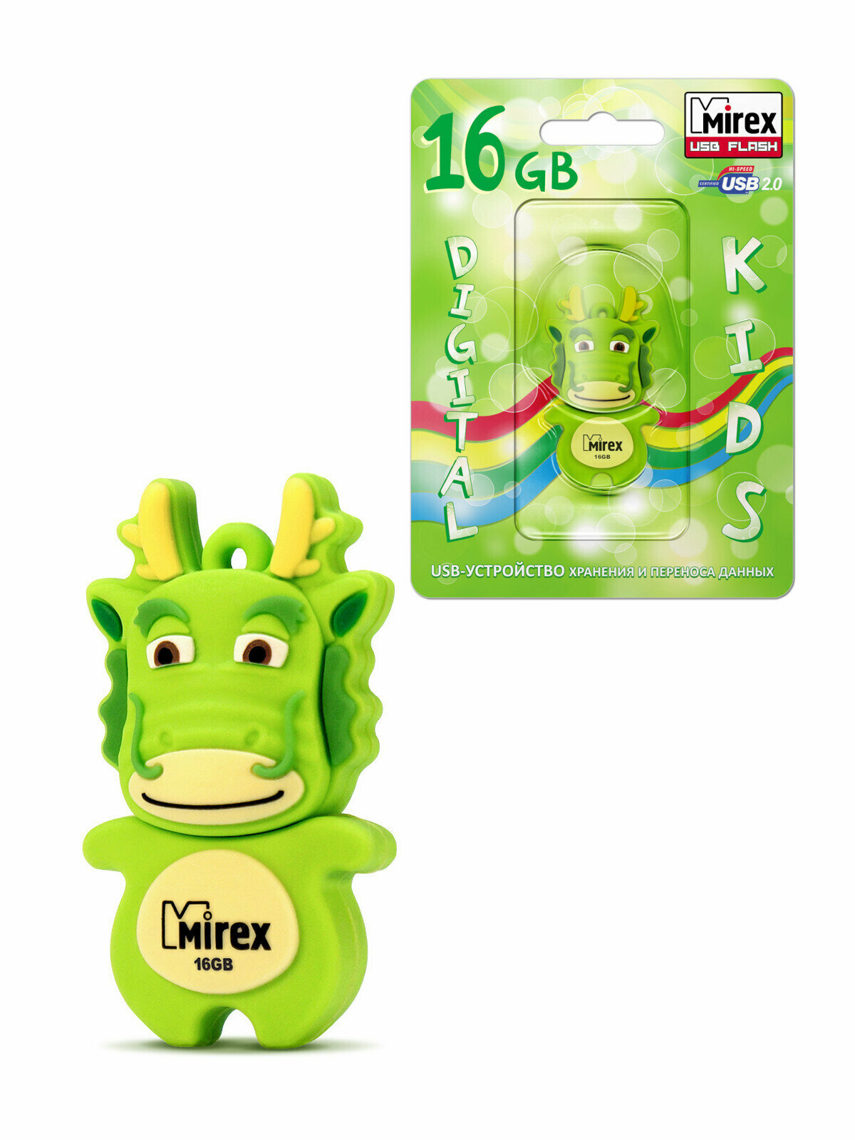 Флеш-диск Mirex DIGITAL KIDS, 13600-KIDGDR16, Dragon Green, RTL