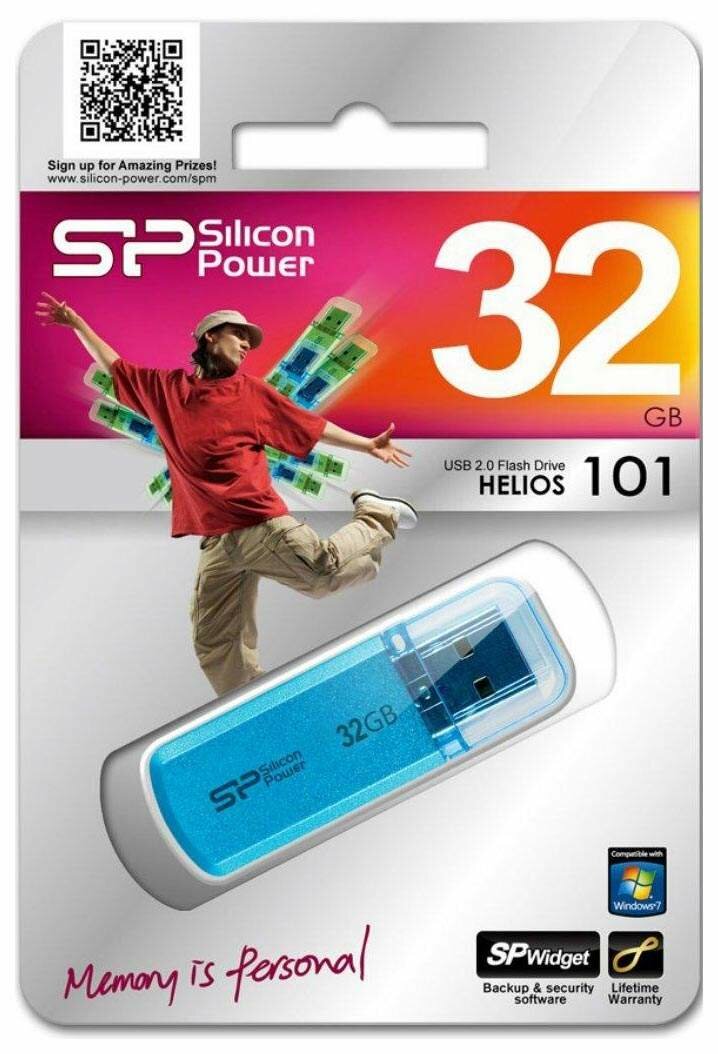 Флешка Silicon Power Helios 101 32 ГБ, 1 шт., лазоревый