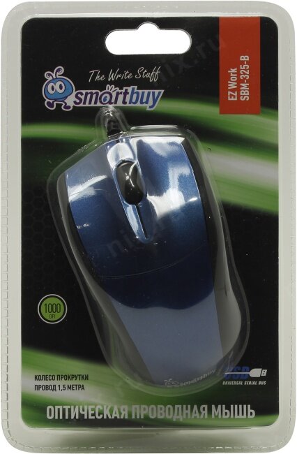 Мышь проводная Smartbuy 325 USB/DPI 1000/3 кнопки/1.5м синяя (SBM-325-B)