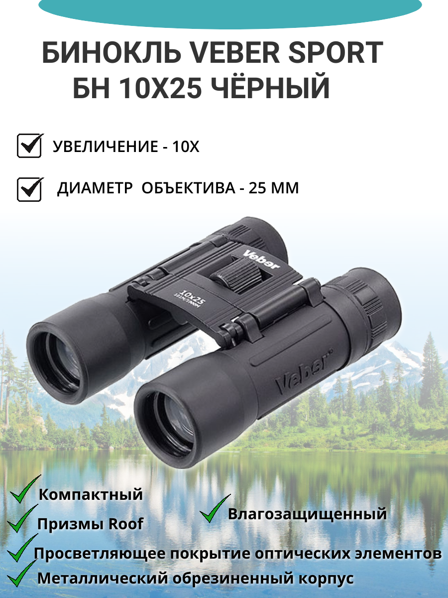 Бинокль Veber Sport БН 10x25, 10 - 10 x 25, черный (11008)