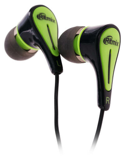 Наушники Ritmix RH-012, 3.5 мм, вкладыши, черный/зеленый [15117389]