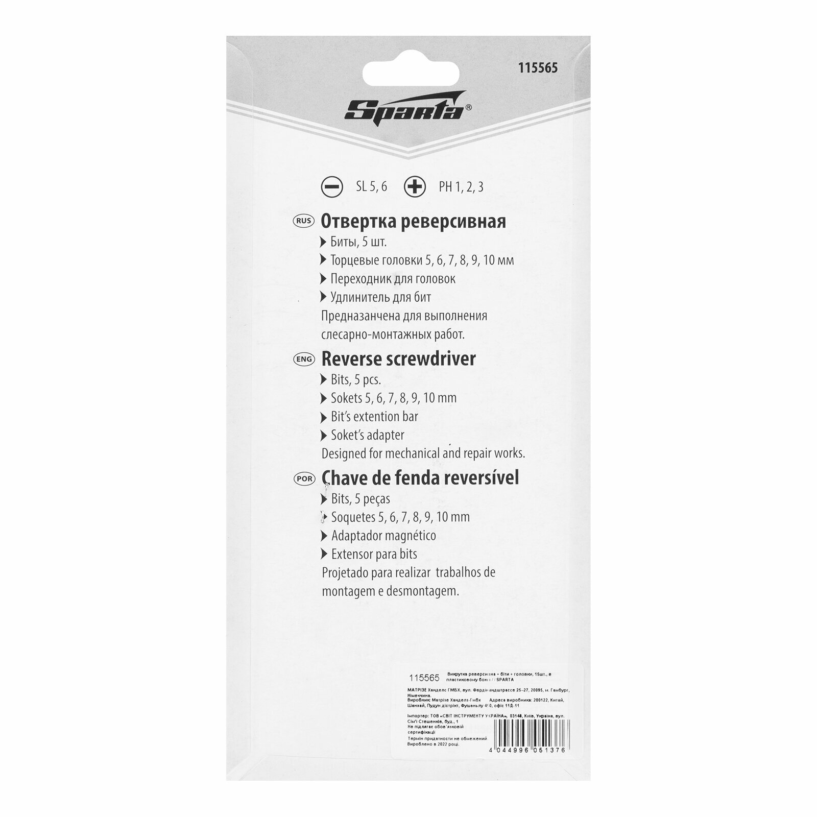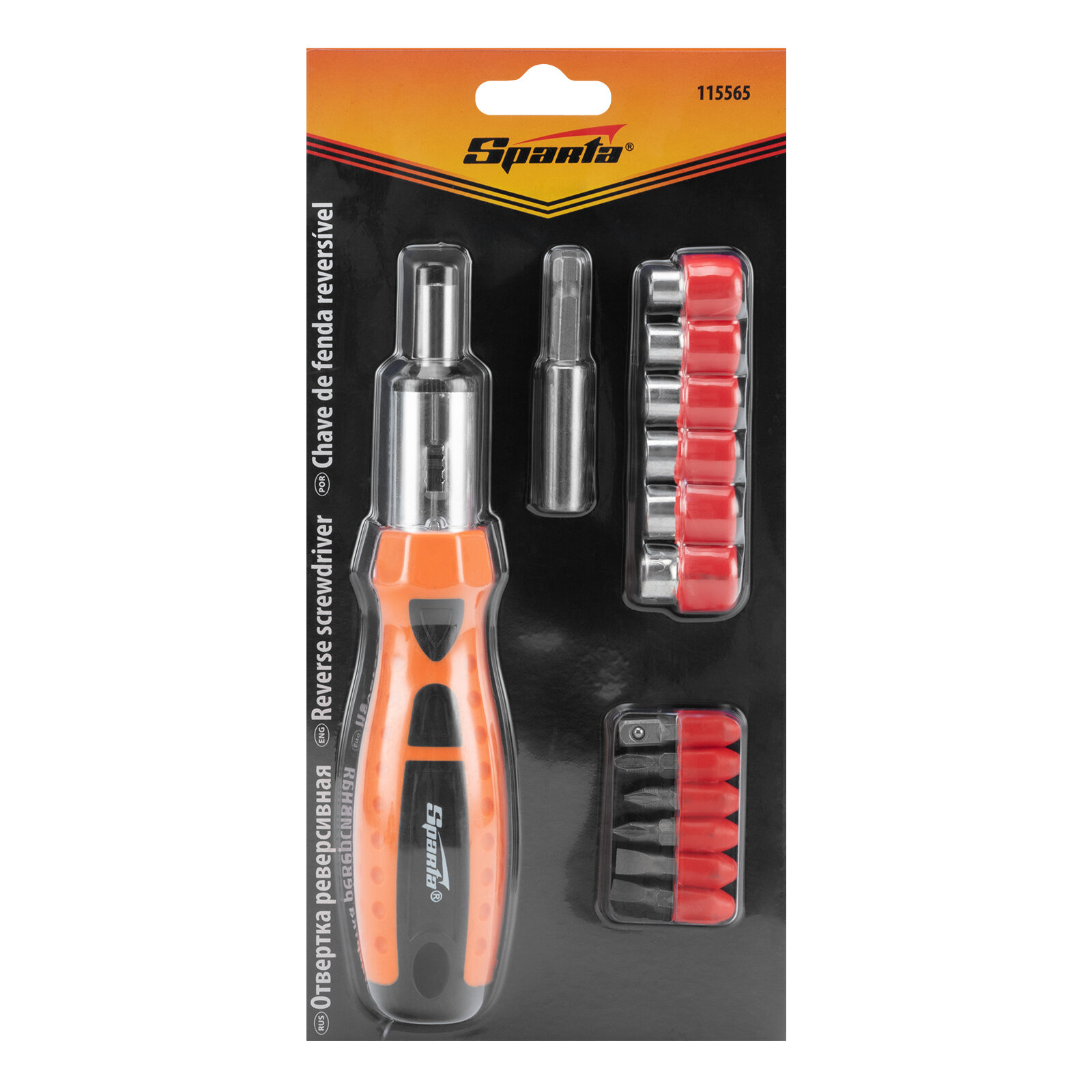 SPARTA Отвертка реверсивная, биты, головки торцевые, 14 шт, Sparta, ( 115565 )