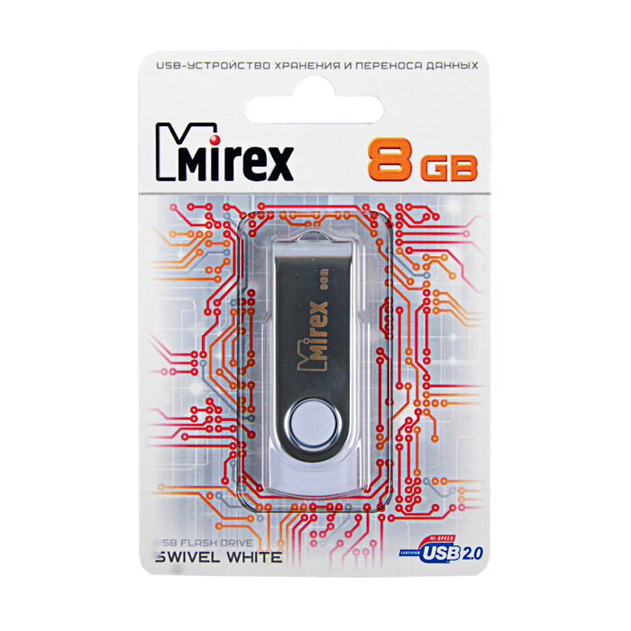 Накопитель Mirex 8GB Swivel белый USB 2.0 Flash Drive (13600-FMUSWT08)