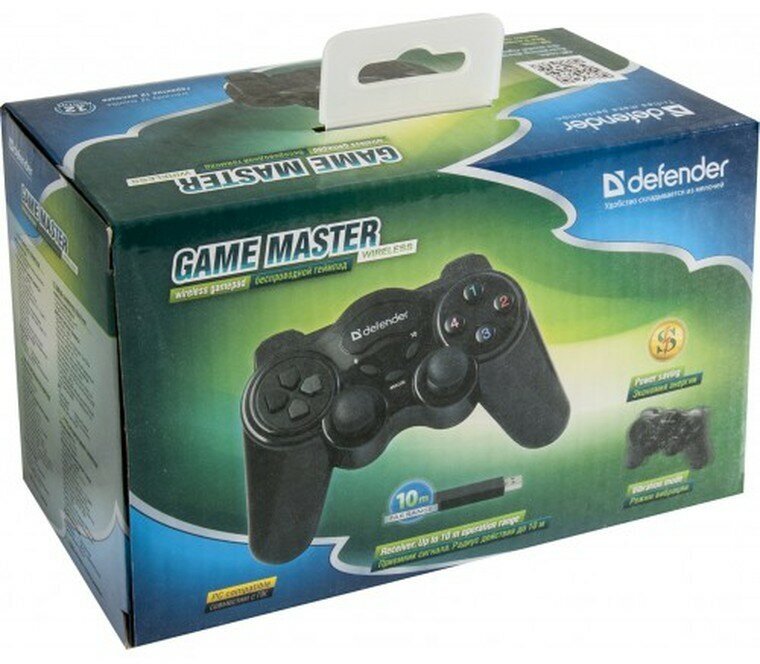 СохранитьГеймпад DEFENDER Game Master Wireless, беспроводной до 10 м., 10 кнопок функциональных+ 2 аналоговых джойстика+ Analog, питание: 4 батарейки ААА. интересное: