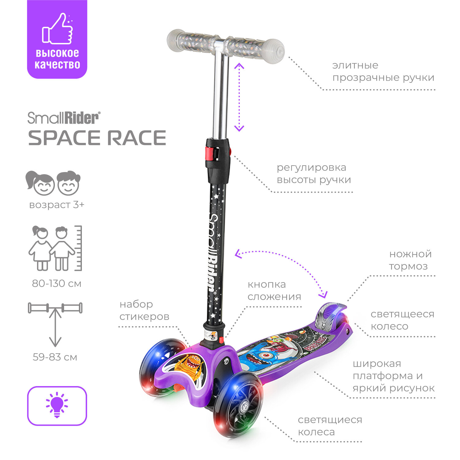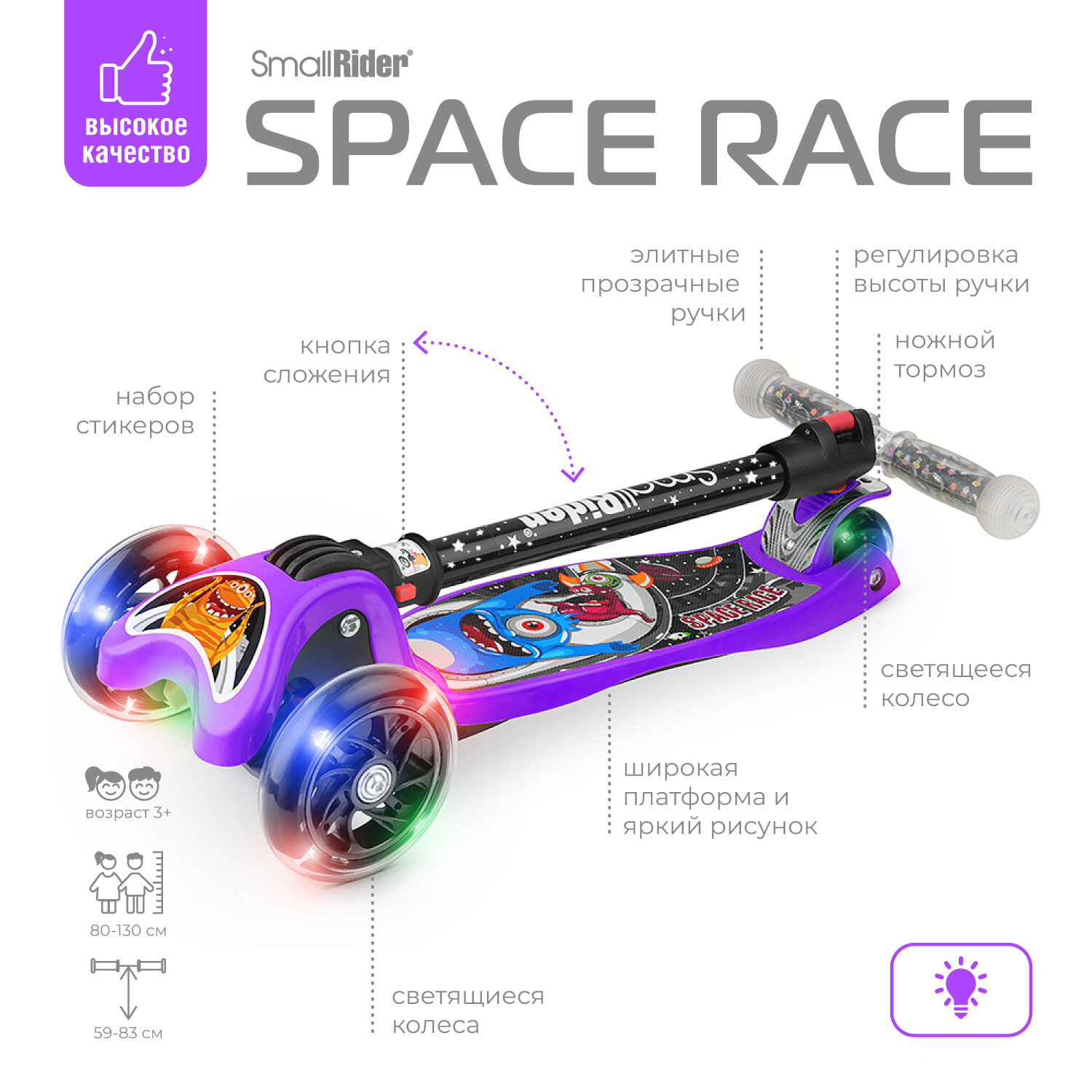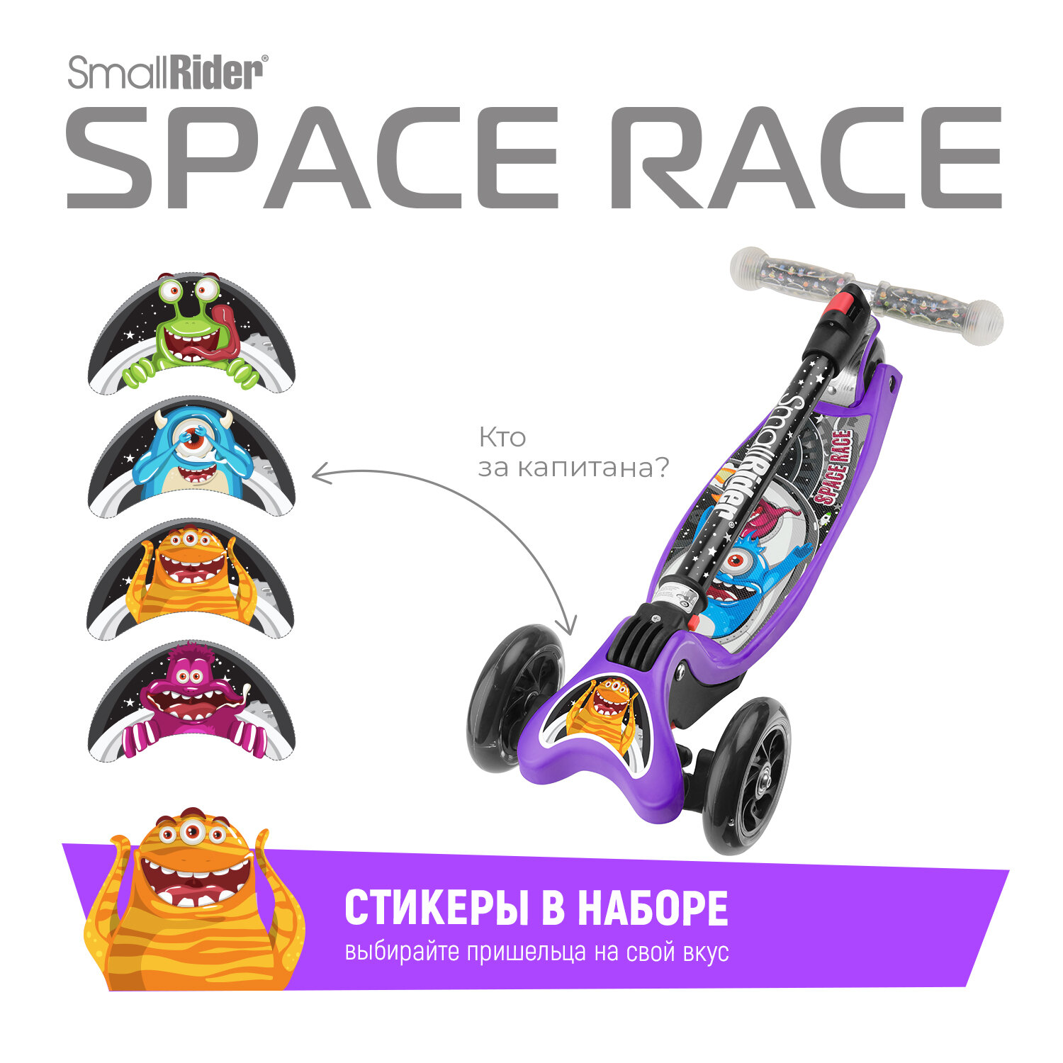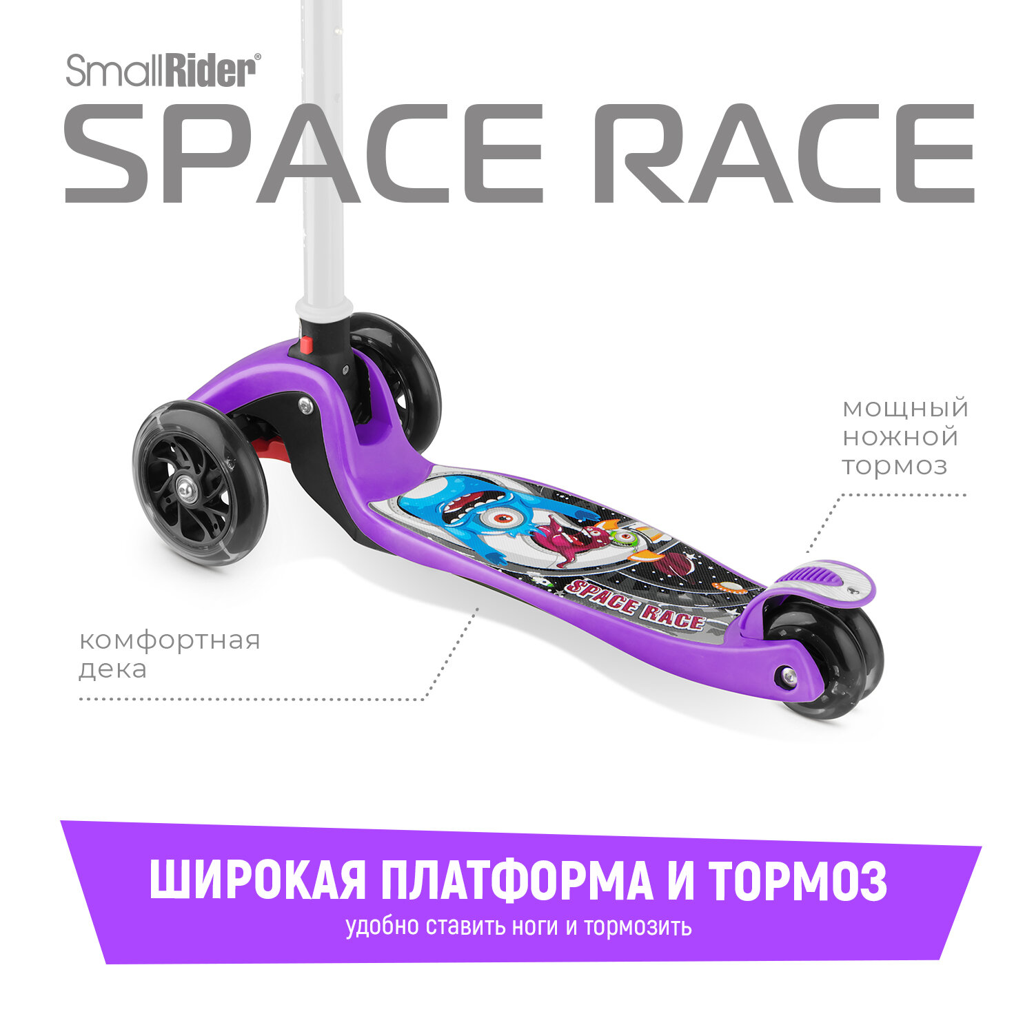 Складной трехколесный самокат Small Rider Space Race (фиолетовый), SpaceViolet интересное: