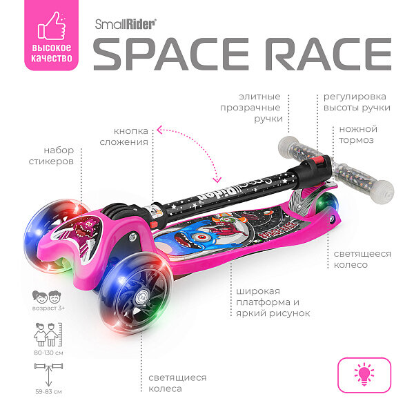 Складной трехколесный самокат Small Rider Space Race (коралловый), SpaceCoral интересное:
