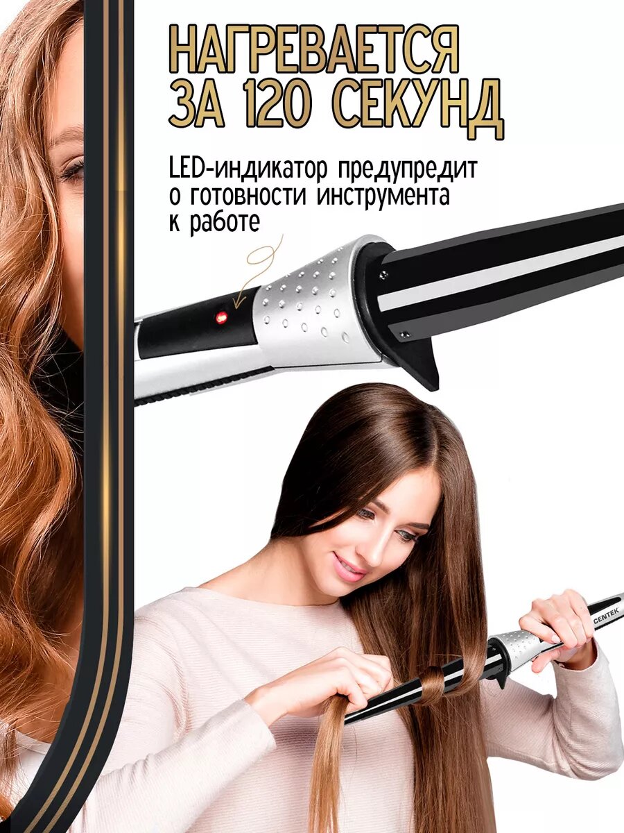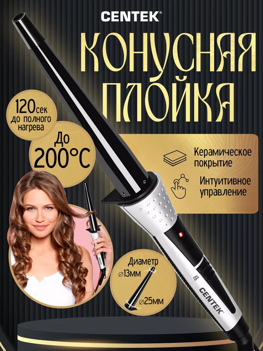 Конические щипцы для завивки CENTEK CT-2084 35Вт, 15 см длина, чёрное керамическое покрытие, LED