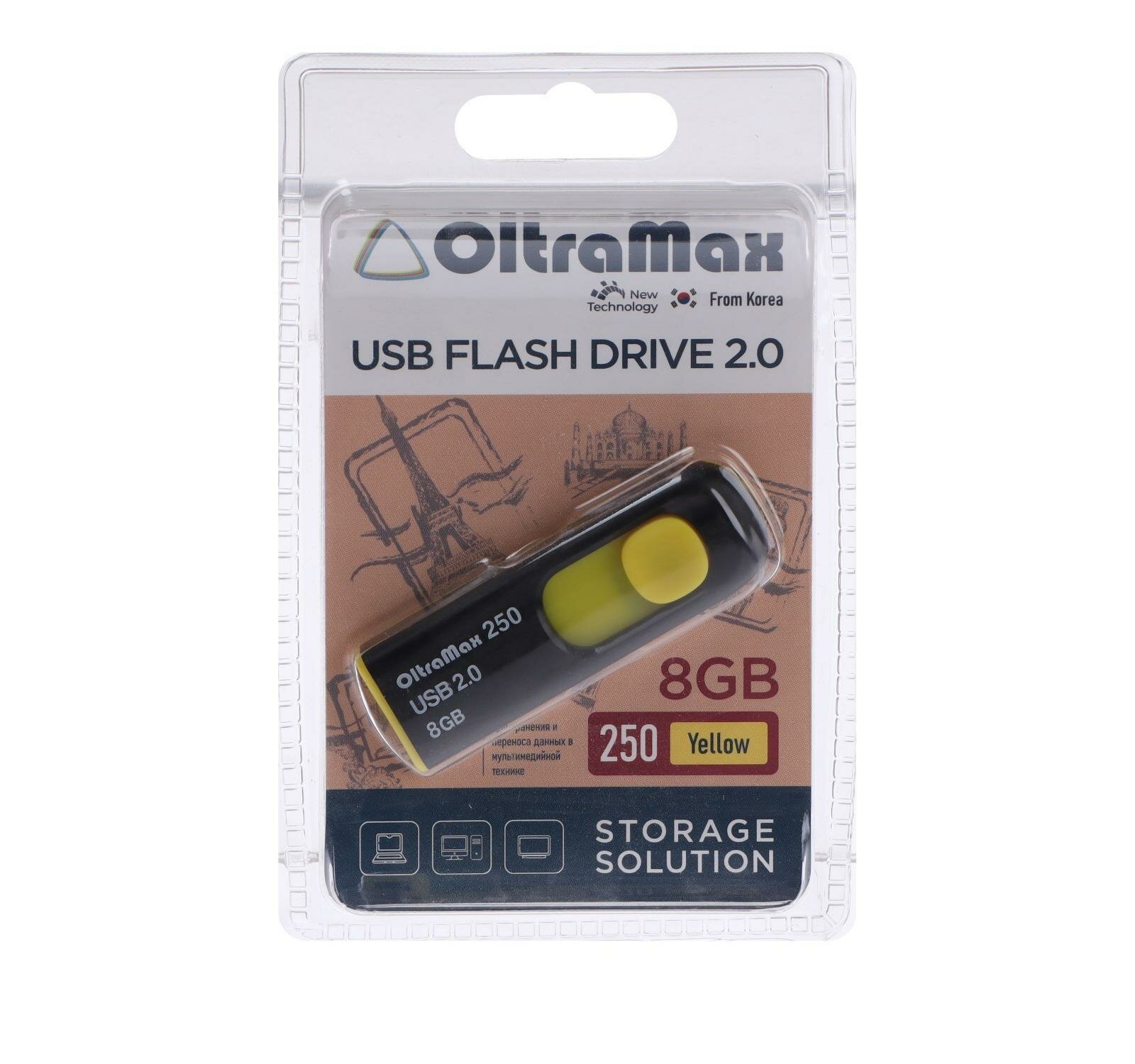 Oltramax флеш накопитель 8Gb Oltramax USB2.0 желтый (OM-8GB-250-Yellow)