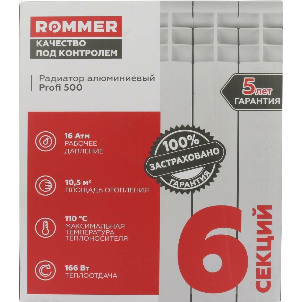 Радиатор алюминиевый Profi 500 6 секций Rommer