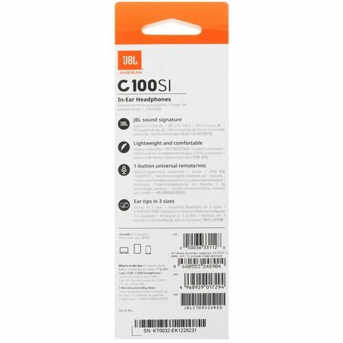 Наушники внутриканальные JBL C100si Black (JBLC100SIUBLK)
