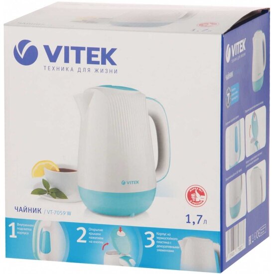 Электрочайник Vitek VT-7059 W белый [пластик, 1.7 л, 2200 Вт, фильтр, скрытый нагревательный элемент]