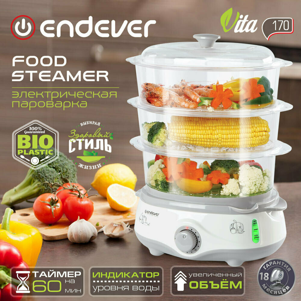 Купить Пароварка электрическая Endever Vita-170, белый/серый (80245)