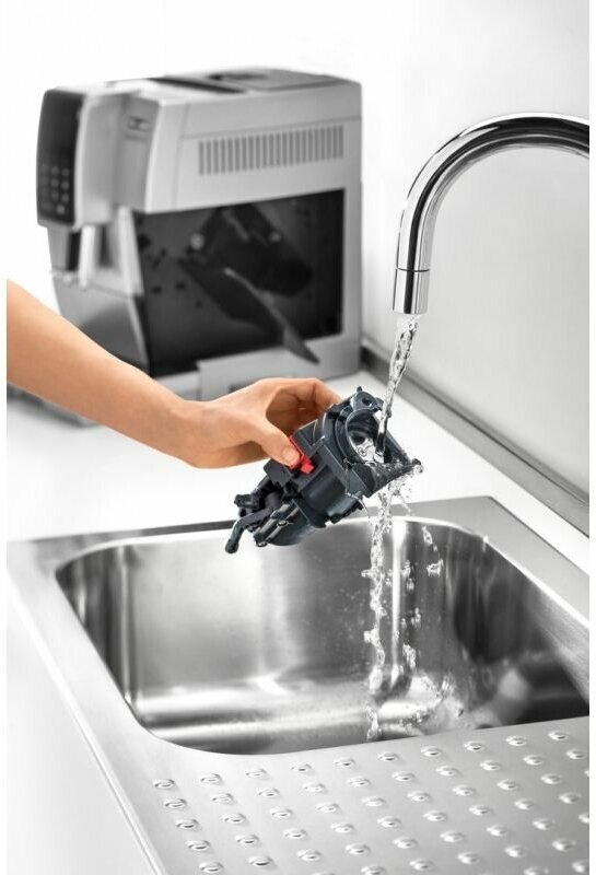 Легко ухаживать, легко разбирать и чистить, буквально 5-7 минут на всю чистку, раз в 2 недели где-то. Капучинатор тоже легко разбирается и моется, тоже 5 минут на мойку, можно в посудомойке мыть. Правда его мыть часто нужно, молоко быстро скисает, даже в холодильнике. Бытует мнение, что кувшин сложнее моется, чем те машины, которые просто со шлангом, но мне пока сравнивать не с чем. Стандартные программы делают 200мл напитка, нужно перепрограммировать. Стаканы влазят высотой до 13см, это очень большие стаканы, если специальные для кофе, то это около 450мл. Однозначный плюс это то, что есть официальные сервис центры, почти везде, а следовательно есть все запчасти, в отличии от мили, юры, нивоны, крупс и т.д. Не шумная, я читал, что ДеЛонги зашумоизолировали много своих аппаратов, не только топовых. |