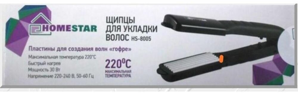 СохранитьЩипцы для укладки волос Homestar HS-8005 30 Вт пластина "Гофре" интересное: