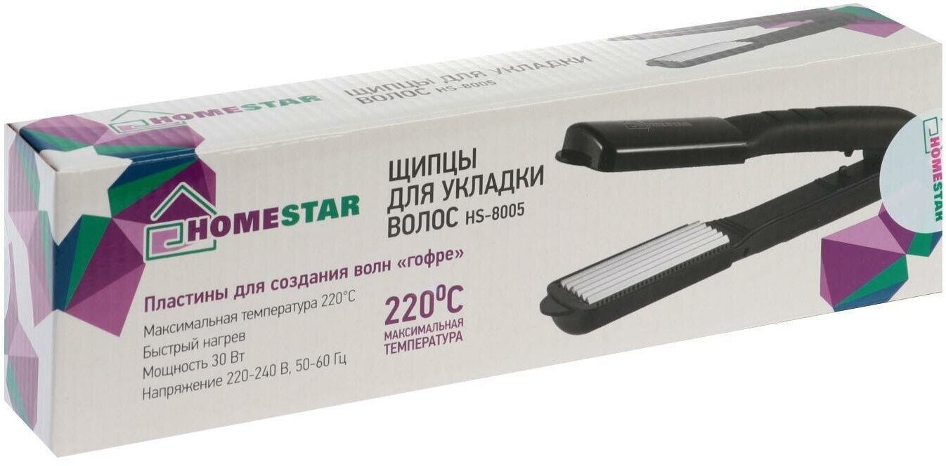 Щипцы-гофре HOMESTAR HS-8005 30 Вт алюминиевое покрытие 33х80 мм 220°С черные