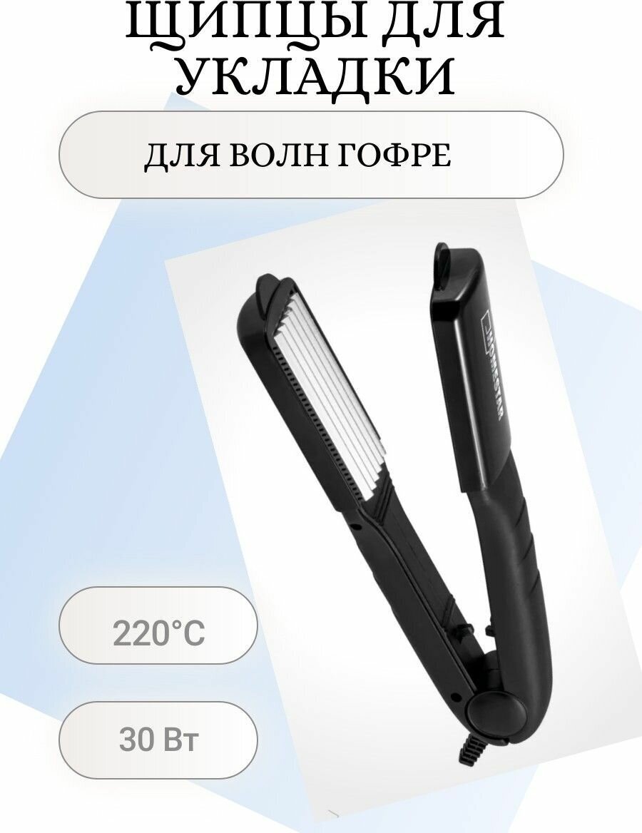 Щипцы-гофре HOMESTAR HS-8005, 30 Вт, алюминиевое покрытие, 33х80 мм, 220С, черные